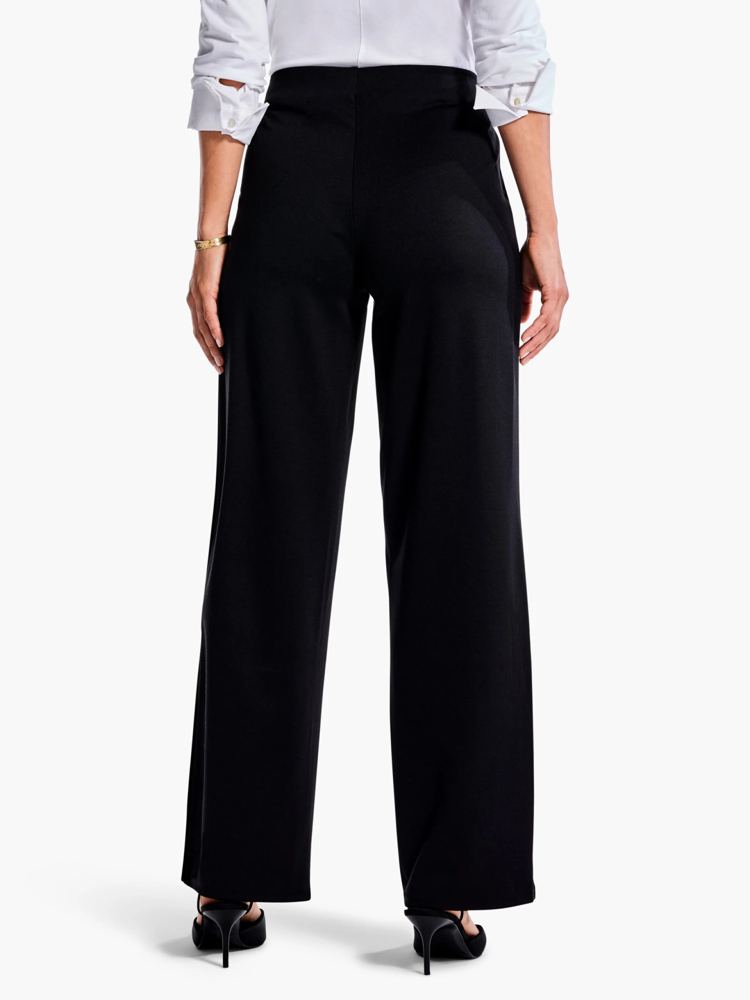 Long live the wide leg. In a silo we call The Artist, this easy wide leg straight leg silhouette is on-trend and at the front of our rotation for both dressy and casual styles. Sits just below the waist and is full length. Pair it with the Drapey Ponte jacket for a put-together set, or let it star in your own outfit.