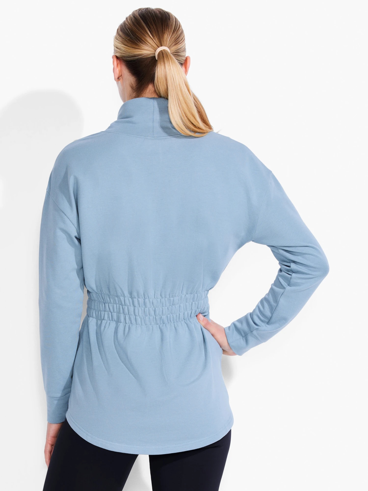 We’re going all in on life layers: the perfect pieces for the befores and afters (and maybe even the “instead of”) of your workout. This relaxed fitting turtleneck is full of character and comfort: the perfect thing for navigating your active lifestyle, whatever that looks like. Featuring a more robust construction of FlowFit with a brushed interior for added warmth and body. Made from a cotton modal blend with spandex added to give it a bit of stretch. With a dropped shoulder silhouette and a hem that sits below the waist.