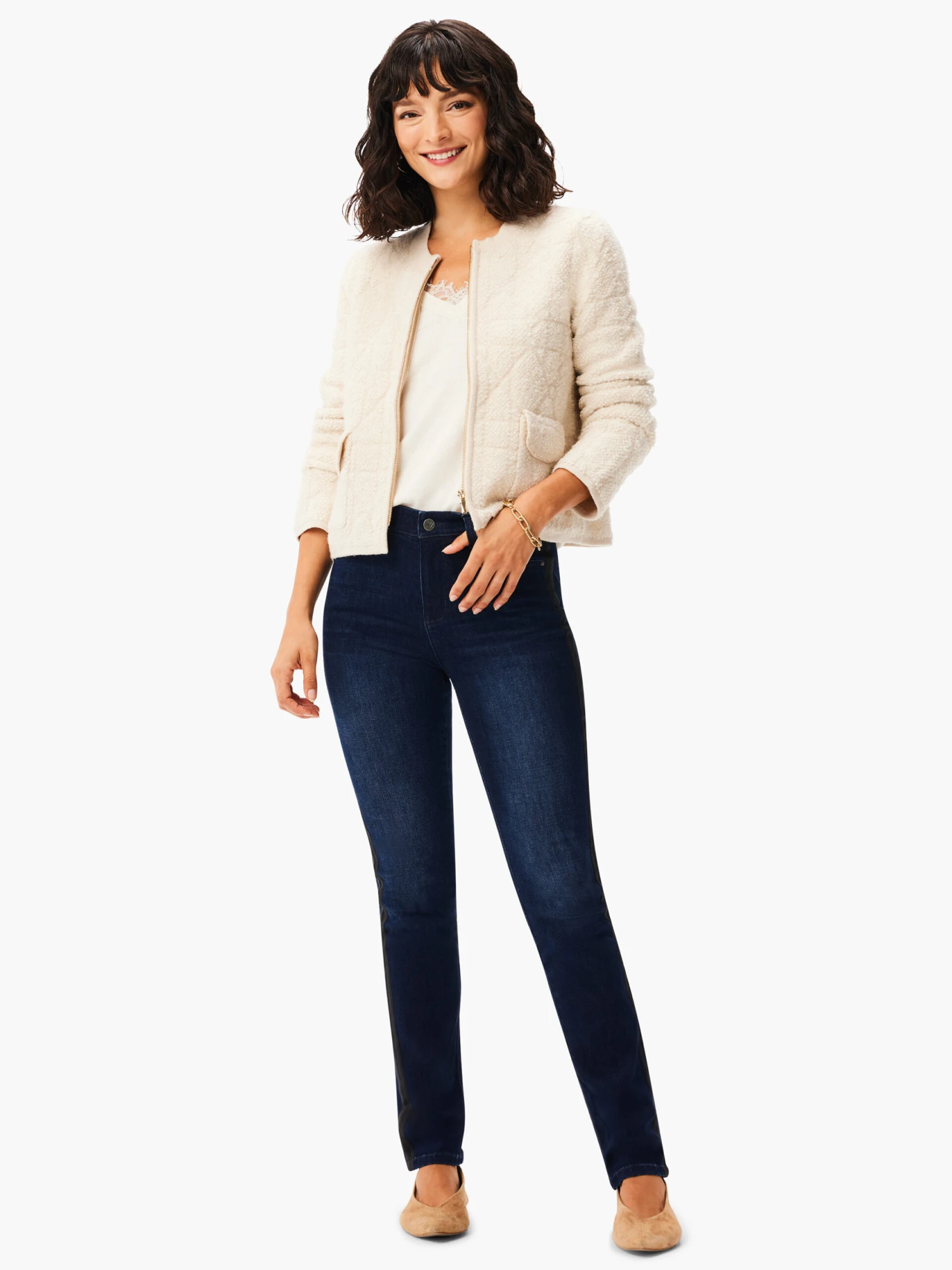 Looking for something that’s all the way cozy and will add a little shine through the darkest months of the year. We’ve got you. Made from our ultra cozy Sherpa Sweater Knit, this front zip cardigan is an elevated layer that does more than insulate; it elevates. With a regular fit and round neck plus a hem that ends at the hip.